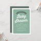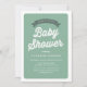 Customisable retro green baby shower invitation. This green baby shower invitation features vintage typography and simple typography. Personalise by adding your event details. This vintage baby shower invitation is available in other colours.