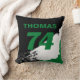 Personalise this name and number colour mix, paint brush style black, green, and white throw pillow. The options to change the font type or colour of the text are available. Ideal for a man cave, dorm room, or bedroom.