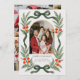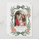 Celebrate the season with this elegant green ribbon holiday photo card, featuring hand-painted greenery, red berries, and a festive bow frame. The front showcases your favourite family photo and personalised message, while the back offers two options — a simple plain design or a three-photo grid layout to share more special memories.