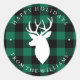 Green Rustic Plaid Pattern and Deer Classic Round Sticker