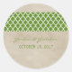 Elegant and sophisticated Rustic Quatrefoil Wedding Stickers featuring a vintage textured look background and a modern pattern border in olive green. Easy to customise, simply add your wedding details. Click "Customise It" to find more personalisation options.