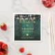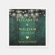 These green rustic wood boho barn string lights wedding napkins can be personalised with your information in chic gold typography. Designed by Thisisnotme©