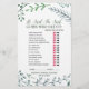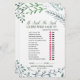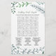 This green rustic wreath "he said she said" game is perfect for an outdoor bridal shower. The front of the game card features "he said she said" which is a fun quiz about the bride and groom. The back of the card features a word find with wedding related words and phrases. The design features a beautiful and whimsical frame of watercolor leaves, plants and greenery. Personalise the game card with the brides name and bridal shower date.