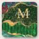 This green safari and tropical themed coaster features leopard spots, zebra stripes, palm leaves and flowers. The monogram combines handwritten script and modern sans serif fonts for a classy and sophisticated look. This will make the ideal gift as it can be customised with a name and initial. The faux gold glitter accents and abstract animal print creates the perfect blend of chic and stylish.