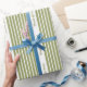 Mod stripe pattern in Emporio Moffa's "Safari" colour palette, customisable Happy Birthday text can be changed to your name, holiday greeting or original saying.