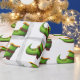 White wrapping paper with a pattern of green and yellow leprechaun boots. Illustrated by Patricia Alvarez.