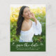 Make sure all your friends and relatives will be able to celebrate your daughter’s milestone graduation! Send out this girly, stunning, simple, modern, personalised photo “Save the Date” postcard for an event to remember. A fun, playful visual of white script handwriting and cute, playful hearts, along with her name, class year, and school, overlay a hunter green band. On the front, add the photo of your choice and personalise the custom text with your grad’s name, school and class year. Your custom message and return address adorn the back. Matching invites, thank you cards, cap toppers, plaques and other graduation goodies are also available in this trendy and stylish collection. Guaranteed to add stylish fun to her special occasion!