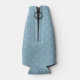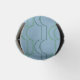 This bottle cooler has an art deco design of green half circles connect with lines on a field of blue.