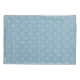 This pillowcase has an art deco design of green half circles connect with lines on a field of blue.