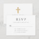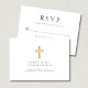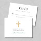 Green Script Religious Cross Boy First Communion RSVP Card