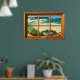 Green Sea 6 Pane Wooden Window Illusion Poster