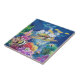 Silk painting of a green sea turtle and friends. Little gold fish, angel fish and others share the sea with colourful seaweeds and corals. Fun and bright for aquariums, gift shops, gifts and cards.