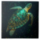 Green Sea Turtle on Dark Background Ceramic Tile