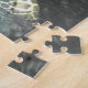 A jigsaw puzzle of a green sea turtle under the water as viewed from above the water, while it swims along.