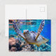 Green Sea Turtle Swimming Over Coral Reef |Hawaii Postcard - Underwater photograph of a sea turtle swimming in crystal clear water just below the surface.