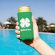 Green seltzer can cooler for St Patrick's Day. Cool design for lucky four leaf clover. Personalise with your own name or text.