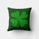 Green shamrock clover St Patricks Day throw pillow. Vintage look four leaf clover. Grunge style vector design for St Paddys Day party. St Pattys Day decoration. Irish pride decor.