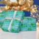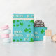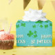 Green Shamrock Clovers Happy St. Patrick`s Day Wrapping Paper. A Happy St. Patrick`s Day text with green Irish shamrocks for luck. Clovers have four leaves. The background is vivid blue. You can change the text.