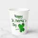 Green Shamrock Irish Happy St. Patrick`s Day Paper Cups. A Happy St. Patrick`s Day text with green Irish shamrocks for luck. You can change the text.