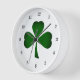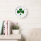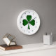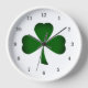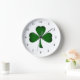 Lucky Clover floral clock with a simple green shamrock design on a white background. Black numbers give you the time giving you an Irish touch to your home decor.