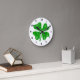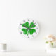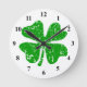 Green shamrock lucky four leaf clover wall clock. Vintage look St Patricks Day decoration. Grunge style vector graphic for Irish St Paddys Day party. Saint Pats design.