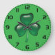 Green Shamrock Three-Leaf Clover Large Clock