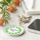 This St. Patrick's Day-themed product features your own words or slogan (which you fill in) surrounded by a cheery Kelly green shamrocks circular border or frame against a crisp white background. To further customise this design, you can change the background colour by clicking the Customise button above. You can also change the font type, size and colour to whatever you wish.