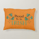 A chic, patriotic Lumbar Pillow with green Shamrock leaves and 'Proud to be Irish' in Celtic scripts, on an Orange background that you can change if you wish. The reverse side is a ditzy Shamrocks pattern, part of the Posh & Painterly 'Shamrocks' collection.