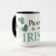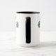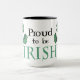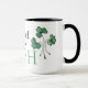 A fun black and white Ringer Coffee Mug with green Shamrock leaves and 'Proud to be Irish' in Celtic scripts. Part of the Posh & Painterly 'Shamrocks' collection.