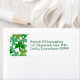 These customisable, personalised return address labels have green shamrocks on the left side. The lucky shamrocks are different shades of green, some light, some dark, some yellowish green.
