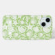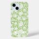 Customize this green shell pattern iPhone 15 case with your your name in a trendy modern CAP font in green on white. It's so modern and beachy!