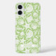 Customize this green shell pattern iPhone 16 plus case with your your name in a trendy modern CAP font in green on white. It's so modern and beachy!