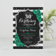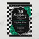 60th Birthday Party Invitation. Elegant floral emerald green design with faux glitter silver and roses. Features black and white stripes and script font. Perfect for a stylish womens bday celebration. Can be customised for any age! Printed Zazzle invitations or instant download digital printable template.