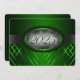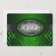 Green and silver graduation party invitation with light and dark green stripes and a silver ribbon going across showing the year of graduation. The back of the card is green with light silver font for people to fill in the graduation party invitations.