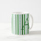 Add personalised style to your kitchen drinkware with a custom-made coffee cup mug. Green Silver Glitter Stripes Monogrammed Custom Coffee Cup Mug. Great gift idea.