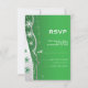 Green, silver grey, white snowflake winter wedding RSVP reply/response card, featuring a waved band in silver grey with stars and elegant snowflakes on gradient green background. Modern and contemporary yet suitable for a traditional wedding. This elegant, classy and stylish template design is part of a wedding set and is fully customisable. A perfect choice for winter, December or Christmas weddings.