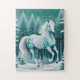 Green Silver Horse in Enchanted Forest Jigsaw Puzzle