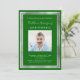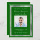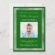 An elegant, modern, simple birthday invitation. A green background decorated with faux silver frames. Personalise and add a photo name and details. White text.