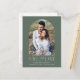 Announce your wedding date in style with our modern photo save the date postcard. The simple save the date postcard features your engagement photo inside of a dark sage green arch frame. "Save the Date" is displayed in white modern serif and script fonts. Personalise the front of the save the date by adding your names, wedding date, and wedding location. The postcard reverses to display your return address and wedding details.