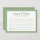 Fresh, modern, and effortlessly chic—this green-striped wedding advice card is perfect for capturing heartfelt notes from guests. With elegant serif text, a customisable name line, and clean lined space for writing, it’s a stylish addition to any bridal shower, garden wedding, or couple’s celebration. The soft green adds a natural, calming touch, while the layout keeps it timeless. A refined keepsake your guests will love to fill out—and you'll love to look back on.
