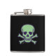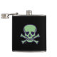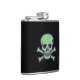 Green Skull black wrapped flasks are for thirsty horror fans, Goths, rockers, bikers, murder mystery fans, pirate reenactors, cosplayers, roleplay gamers and just drinkers who like skulls. Green Skull is Steamy Raimon original art.