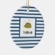 Green Sleepy Baby Dino | Dark Blue Stripe Modern Ceramic Ornament