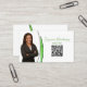 There's just a sliver of faux green glitter on this front and back of this business card front design. The front features a photo placeholder on the left with template name and title plus QR code on the right. The back includes a coordinated design with text fields for the business name and details. Replace the placeholder photo with your vertical format photograph and the link for a QR code. Personalise the template fields or edit using the design tool to select a font style, size, and colour you like. Use the QR code link to send potential customers to your website, review page, photos or other business related page. The placeholder photo is courtesy pixabay.com.