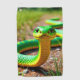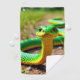 This golf towel has a green snake on it.