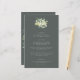 A dark grey green, three course wedding menu, featuring a bouquet/posy of hand painted snowberries and eucalyptus on the front and a wreath on the back. All text is fully editable, and the scattered dots on the front and back can be deleted before ordering if you would prefer. Please view this Collection in my store for menu’s with alternative floral arrangements, a different number of courses and in different sizes/colours/shapes. Coordinating items also available.