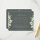 A dark grey green flat wedding enclosure card for all your wedding information: online response/rsvp, accommodation, travel information, registry details, wedding website and more. Featuring an edging of hand painted snowberries and eucalyptus on the front and a wreath on the back of the card. All text is fully editable and the scattered dots on the front and back can be deleted before ordering if you would prefer. This card is available with alternative botanical designs, in a portrait format, and in different colours. Please view the Collection in my store to see all options and coordinating items.