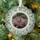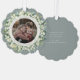 An elegant sage-green Christmas/Holiday Ornament Card with a ribbon to hang it up. Hand painted snowberries and stems of eucalyptus form a Christmas wreath around your photo. All text is fully editable so you can easily change the message/style/colour/size. The back has template text for a longer printed message - delete before ordering if not wanted. The backer can also be swapped out for a photo if you prefer. Other colours and coordinating items available.