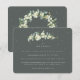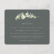 A dark grey green flat wedding enclosure card featuring an elegant stem of hand painted snowberries and eucalyptus on the front and a wreath on the back of the card. All text is fully editable and the scattered dots on the front and back can be deleted before ordering if you would prefer. This card is available with alternative botanical designs, in a portrait format, and in different colours. Please view the Collection in my store to see all options and coordinating items.