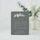 A dark grey green flat wedding enclosure card for wedding travel information or for directions if your reception is at a different venue. Featuring an elegant stem of hand painted snowberries and eucalyptus on the front and a wreath on the back of the card. All text is fully editable and the scattered dots on the front and back can be deleted before ordering if you would prefer. This card is available with alternative botanical designs, in a landscape format, and in different colours. Please view the Collection in my store to see all options and coordinating items.