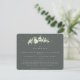 A dark grey green flat wedding reception enclosure card for wedding receptions that are held at a different venue than the wedding ceremony. The card features an elegant stem of hand painted snowberries and eucalyptus on the front and a wreath on the back of the card. All text is fully editable and the scattered dots on the front and back can be deleted before ordering if you would prefer. This card is available with alternative botanical designs, in a portrait format, and in different colours. Please view the Collection in my store to see all options and coordinating items.
